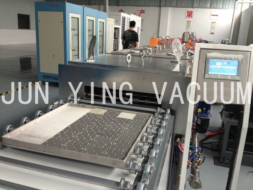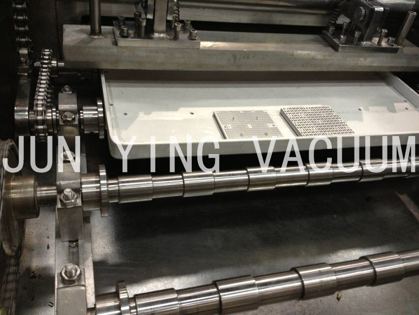 2.進料區(qū):可放置625mmχ505 mm料盤二十盤,一盤Max 35個治具,一次入料Max可達700個治具,自動送料盤結(jié)構(gòu)配置一個KY- 400高真空分子泵或10 FCryo pump及採用Rotary pump + Booster之低真空pump組合,抽氣速率可達10000 L/hr